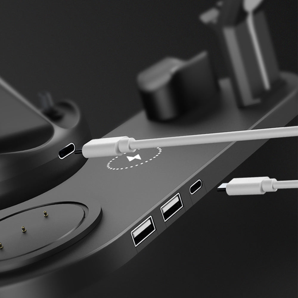 7 in 1 Qi Wireless Fast Charging Station Dock for iPhone iWatch Airpods Black