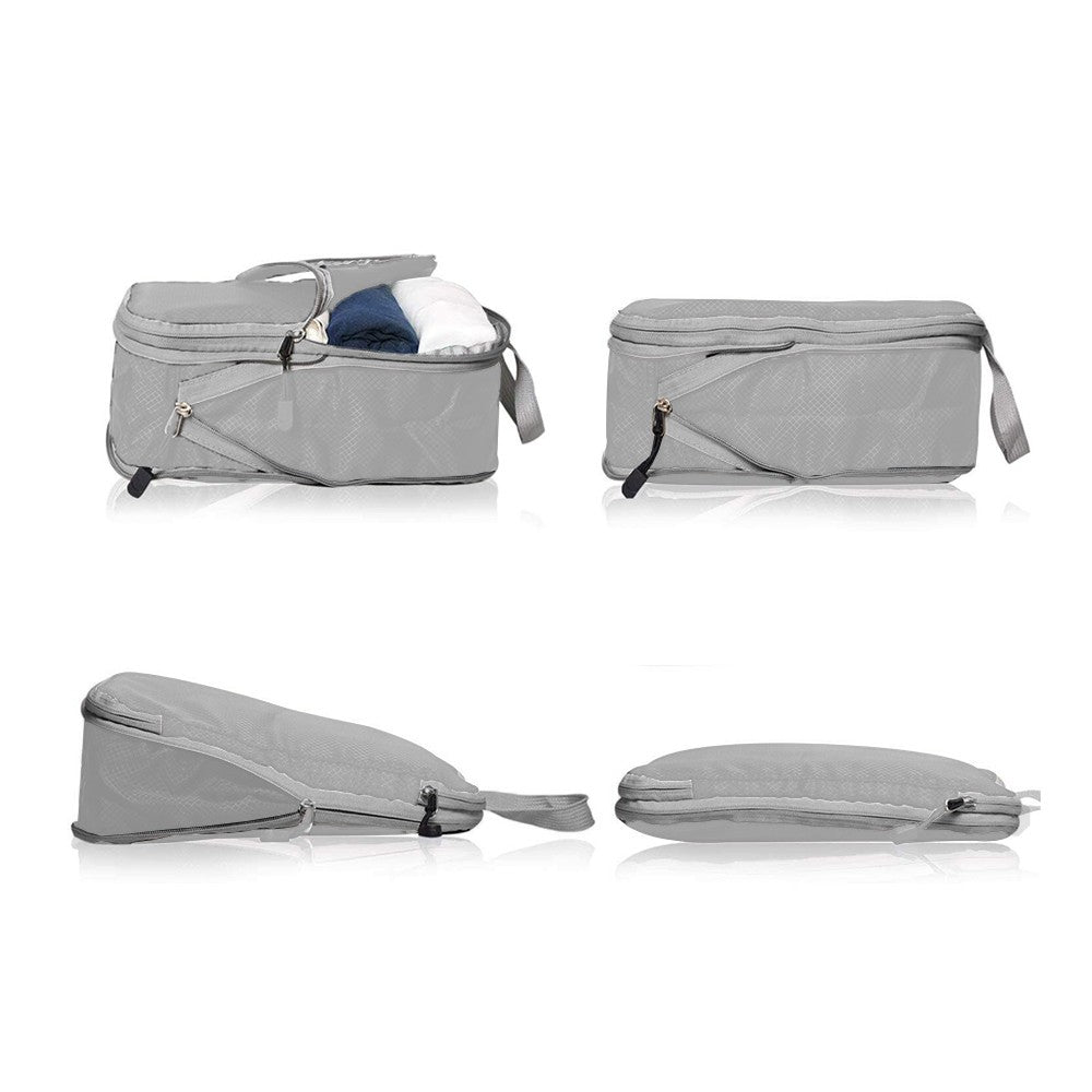Set of 3Pcs Travel Compressible Packing Cube Pouch Clothes Storage Bags Suitcase Luggage Organizer Grey