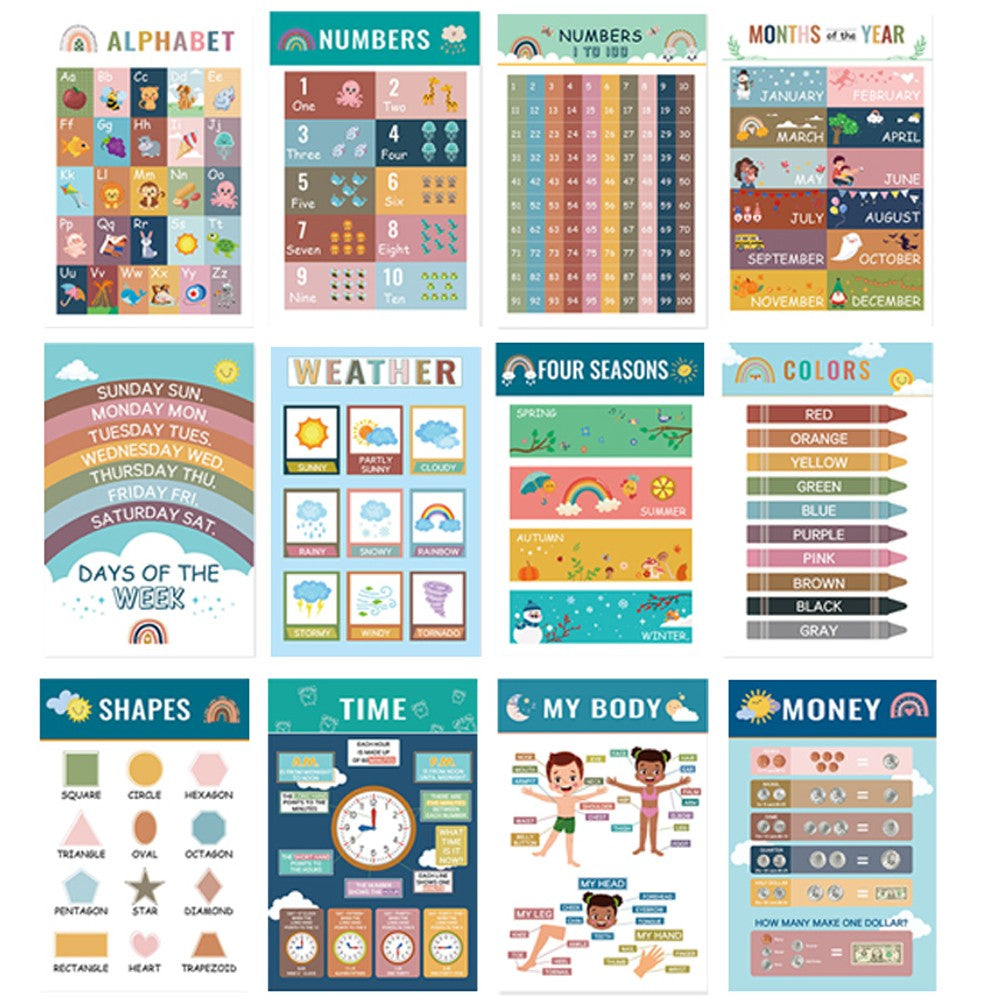 16Pcs Kids Educational Posters Early Learning Posters Toddlers Educational Charts for Classroom Kindergarten