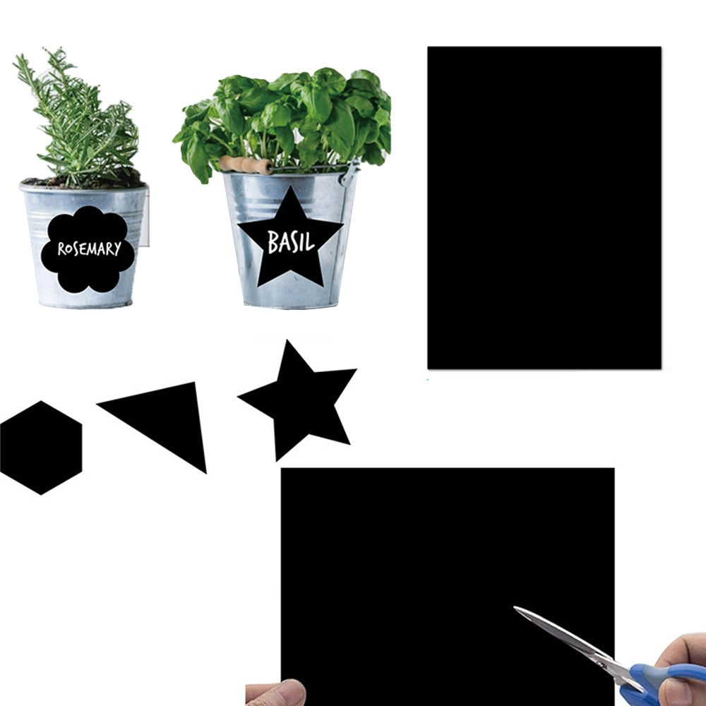 Comes with 6 sheets of 108 pieces blackboard labels in 7 different shapes, and 2 sheets of cutable blackboard sticker, can be used in glass, canister, bottle, cabinet, suitcase, etc.