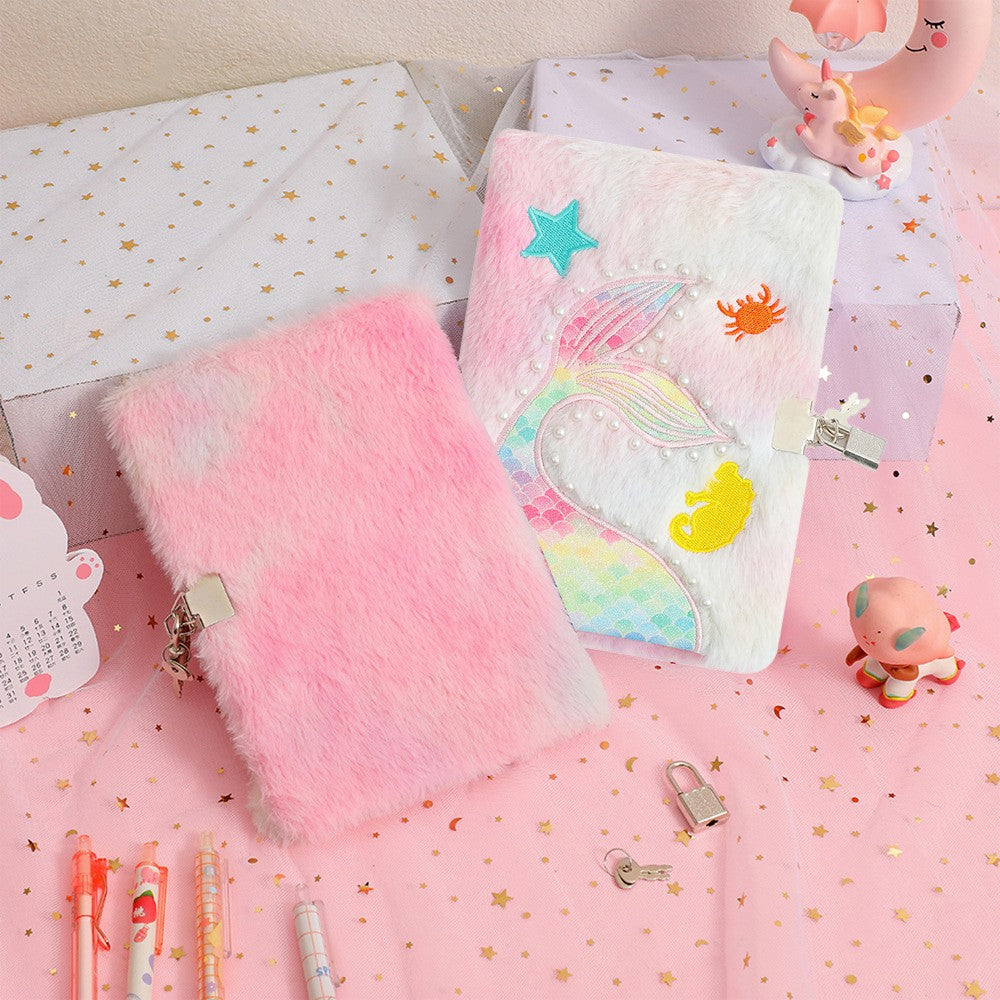 This girls diary boasts a unique plush design with delicate embroidered mermaid patterns, soft fuzzy texture, and vibrant tie-dye colors, making it an instant favorite among girls and mermaid enthusiasts.