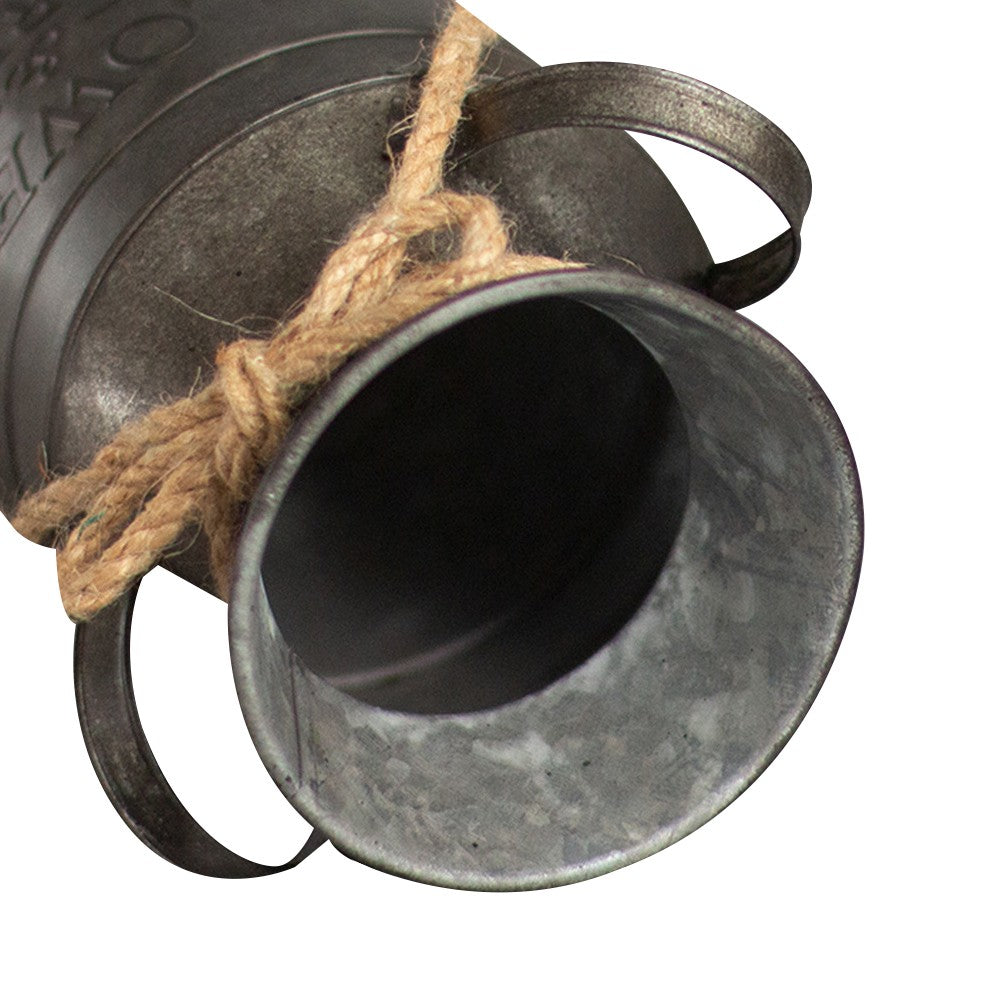 Designed with a unique milk jug-shaped silhouette and rope details, this metal bucket adds a vintage and timeless appeal to your decor.
