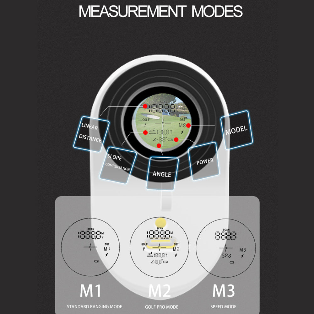 Equipped with six measurement modes including slope compensation, golf flag lock, horizontal distance and height measurement, speed measurement, and continuous scan measurement.