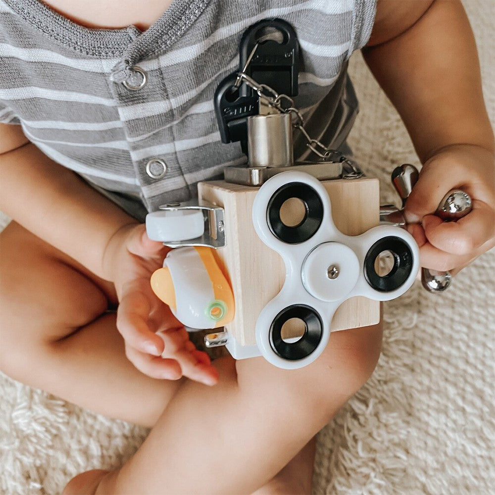 The wooden busy board is both fun and educational, making it a wonderful gift idea for any 3+ toddler.