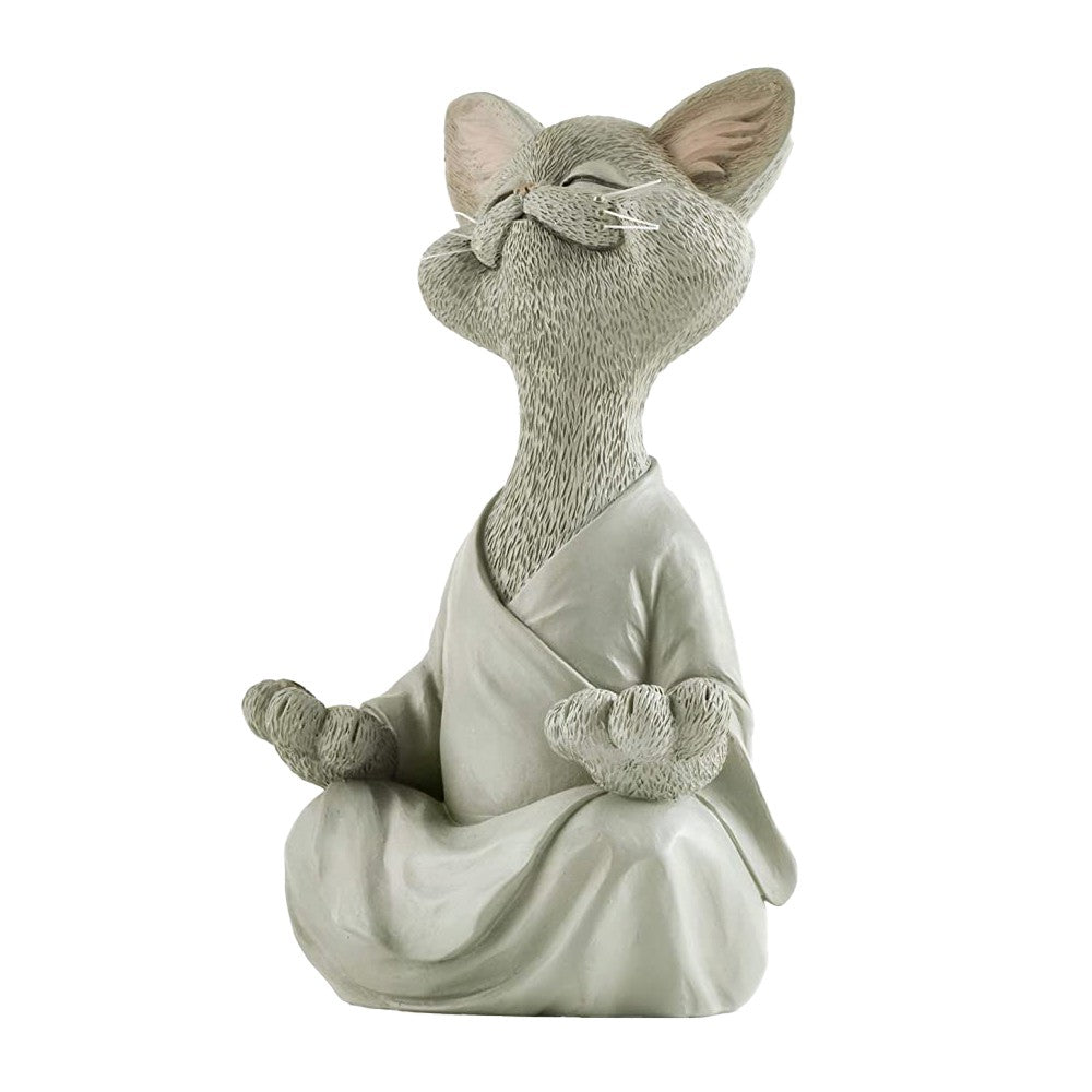 18cm Happy Cat Buddha Figurine Meditation Cat Statue Home Decoration Ornament Grey