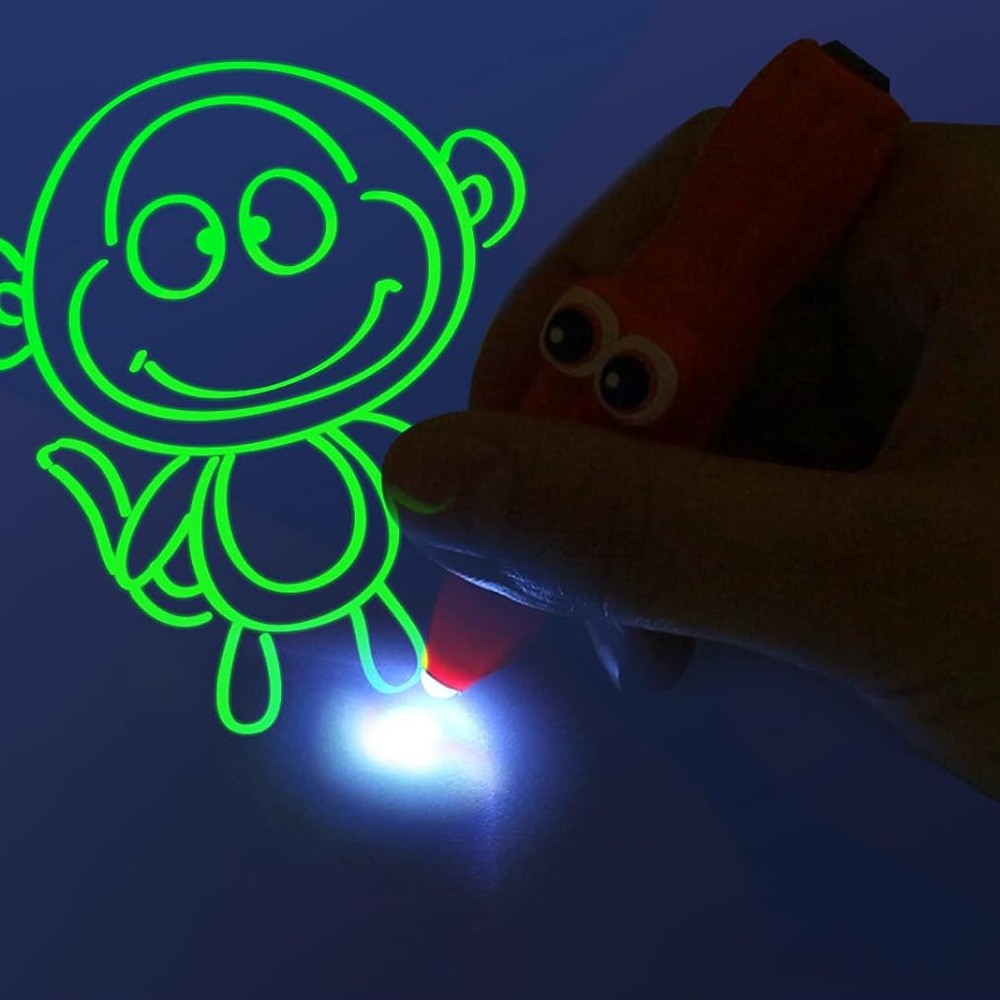 Use a highlighter pen to draw and the drawing will glow in the dark.