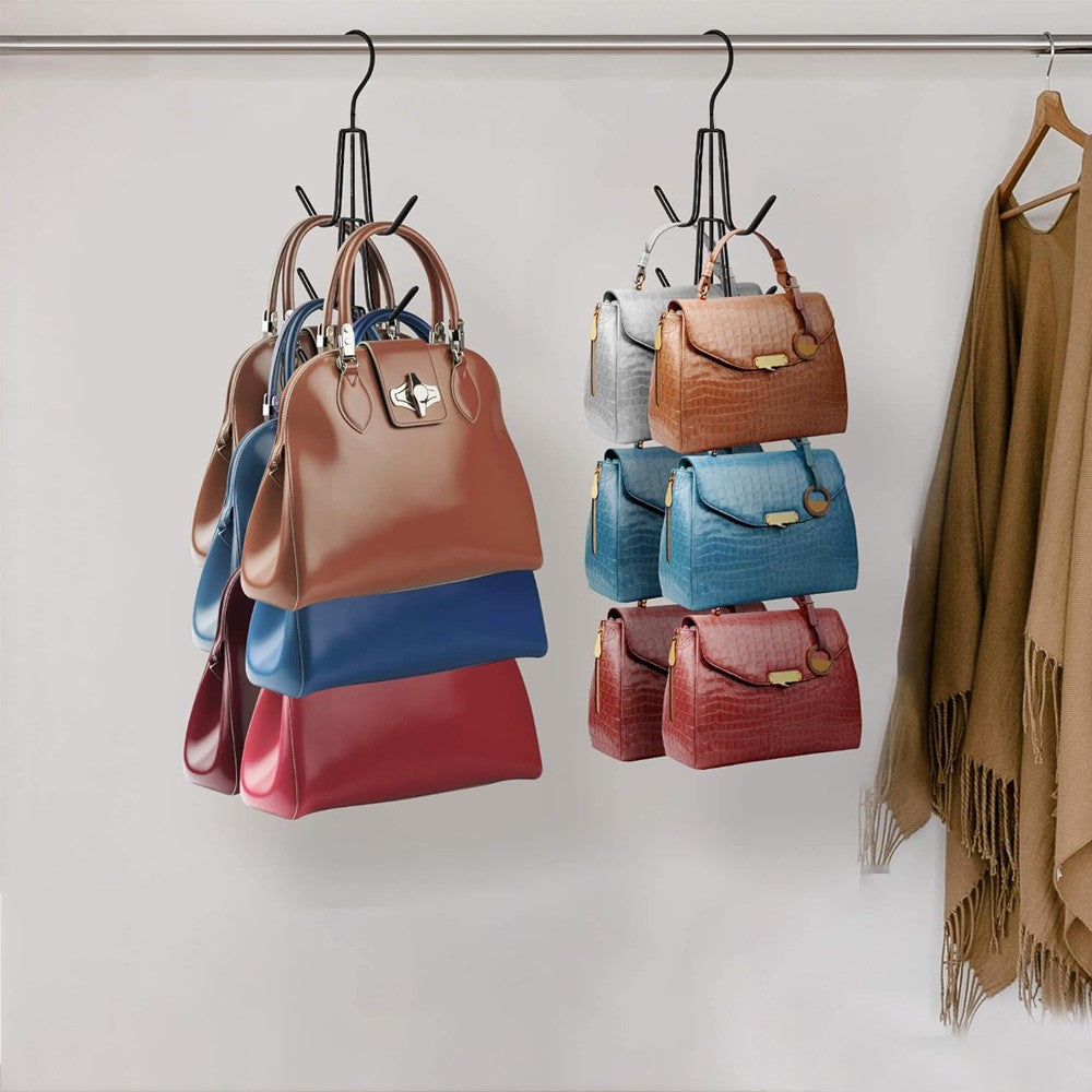 With 3 layers and 2 hooks per layer, each hanger neatly stores up to 6 purses.