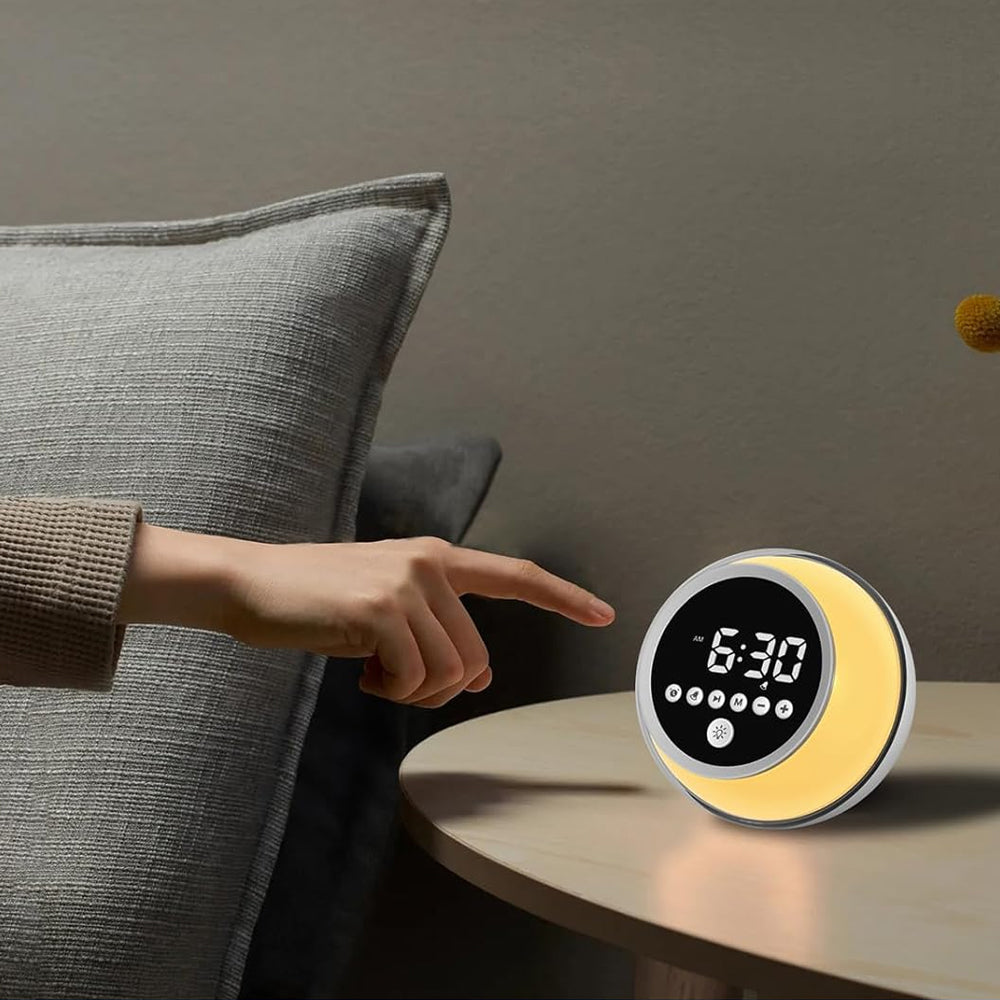 3-in-1 Bluetooth speaker night light with Bluetooth 5.3 speaker, LED night light and digital alarm clock.