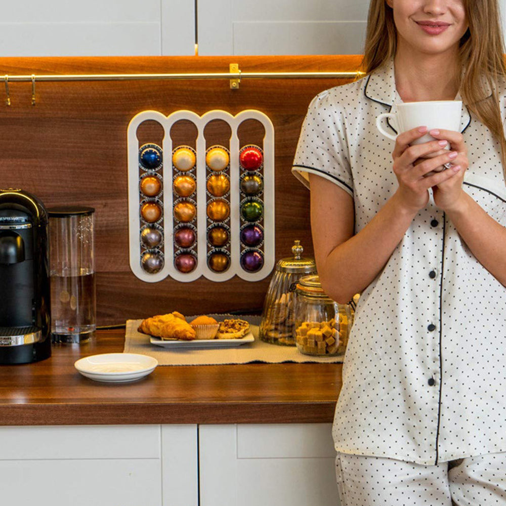 Type: Coffee Pod Holder, Espresso Capsules Holder, Wall-Mounted Storage Rack for Nespresso Vertuo Capsules, 24 Pods Wall Mounted Storage Organizer, Coffee Capsule Dispenser Rack