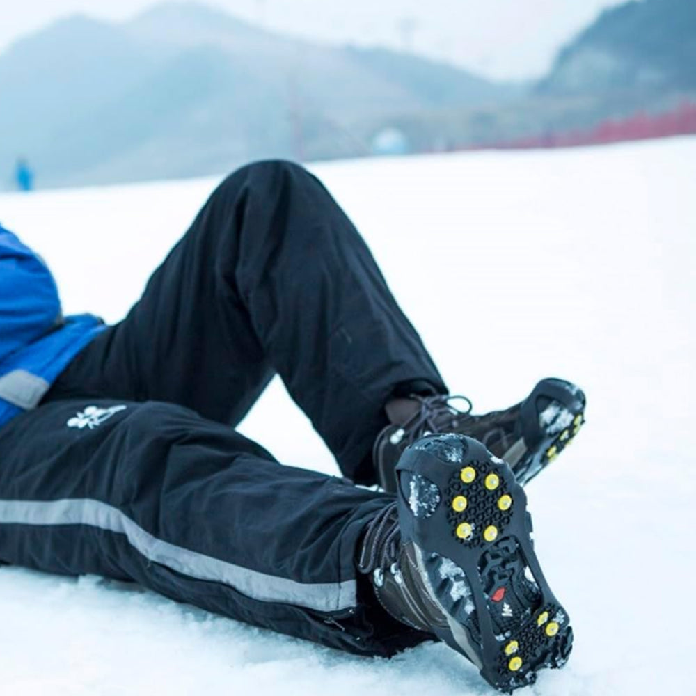 Made of TPE and anti-slip steel studs, ensuring excellent grip on ice and snow, maintaining firmness and elasticity even in cold temperatures.