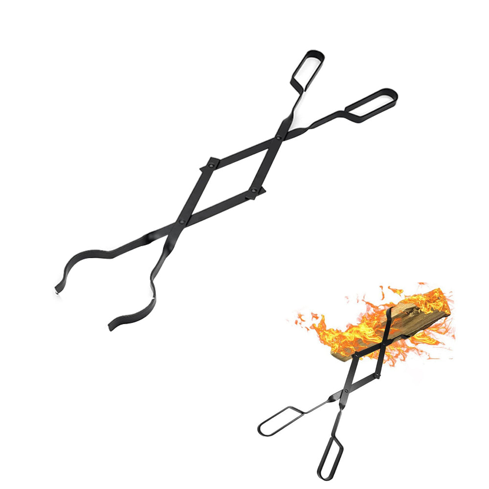 Rust resistant finish of fireplace tongs is useful for indoor fireplace, wood burning stove, outdoor backyard fire pit, bonfire, campfire, a boiler.