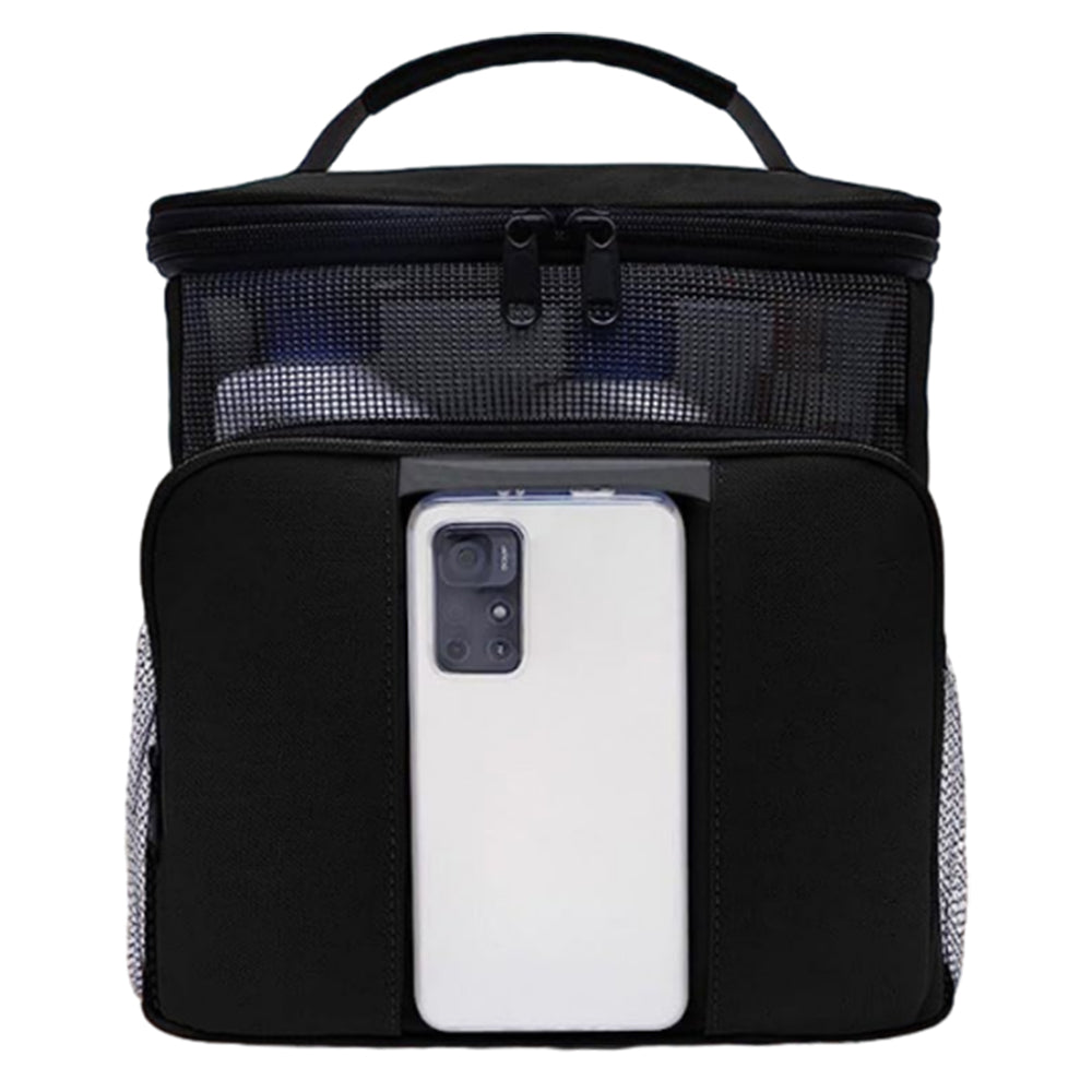 Made from oxford fabric and breathable mesh, it is durable, water-resistant, easy to clean, and allows you to easily see the items inside.