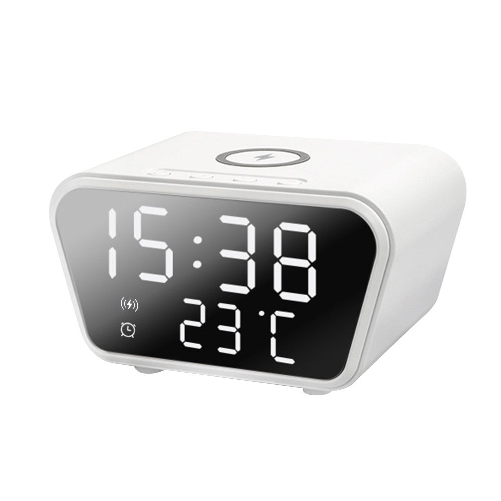 15W Digital Alarm Clock with Wireless Charging Fast Wireless Charger Station White