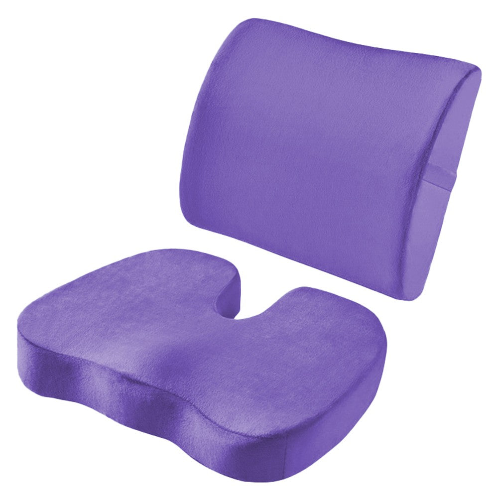 Memory Foam Seat Cushion and Lumbar Support Pillow for Office Chair Car Purple