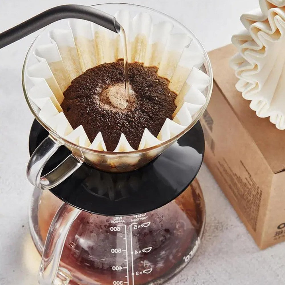 Warming Note: Please soak the coffee filter paper with hot water before you pour the ground coffee, which can make filter paper more compliant.