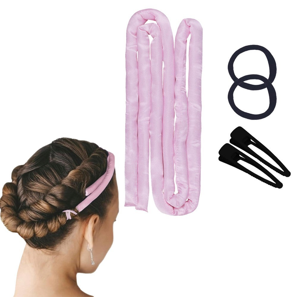 1.6M Heatless Hair Curling Rod Set Long Hair No Heat Curls Headband - Pink