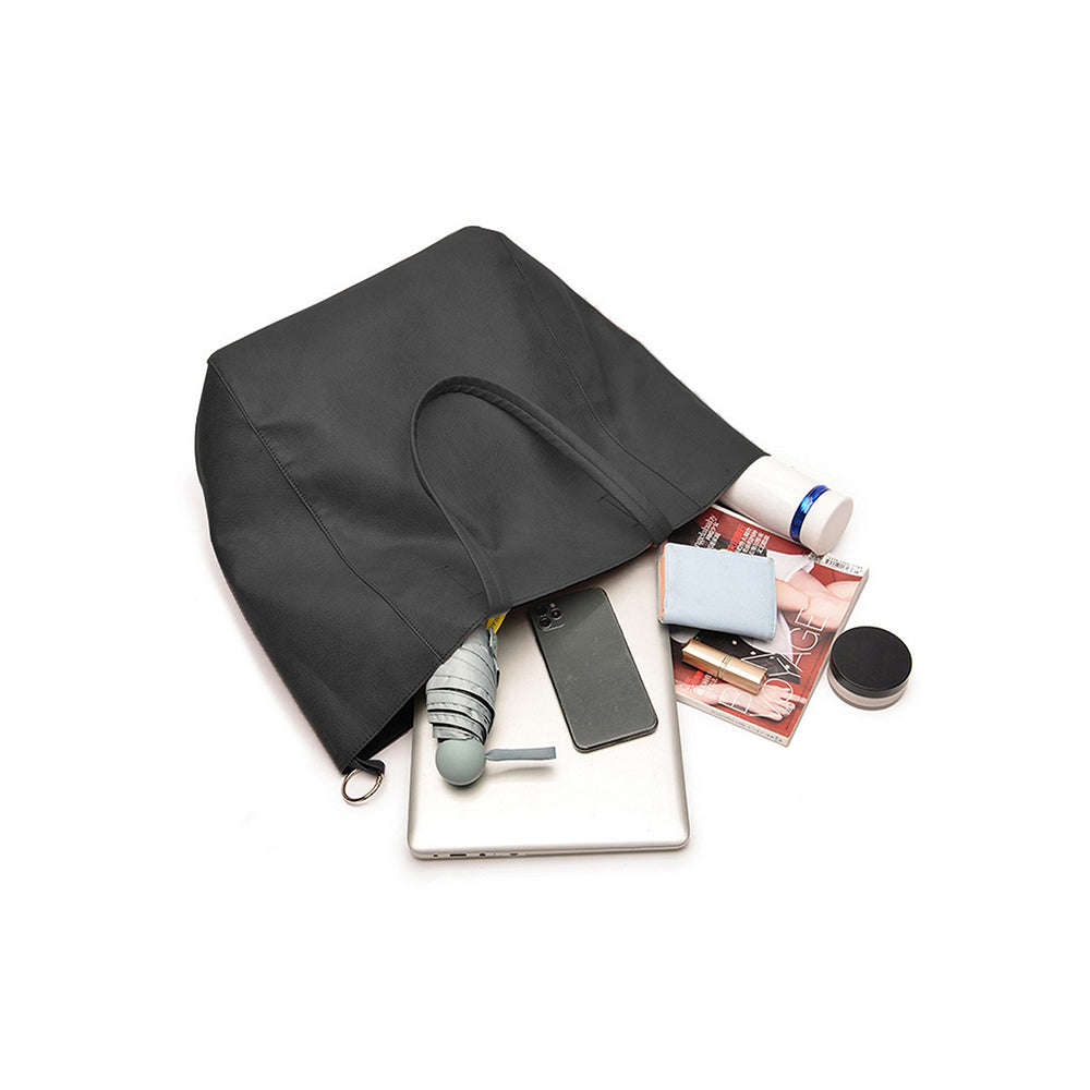 PU Leather Oversized Tote Bag Large Handbag with Internal Cosmetic Bag - Black