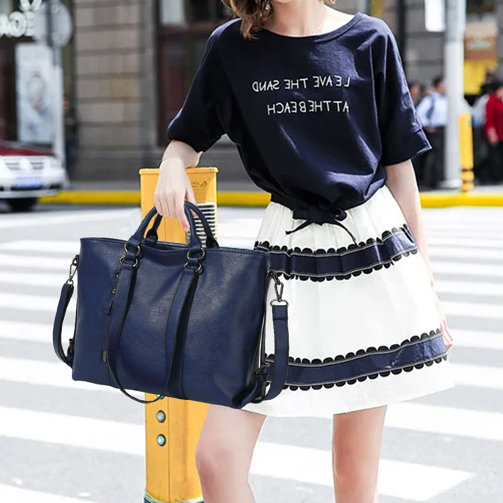 PU Leather Women's Tote Shoulder Crossbody Bag for Work and Travel - Dark Blue
