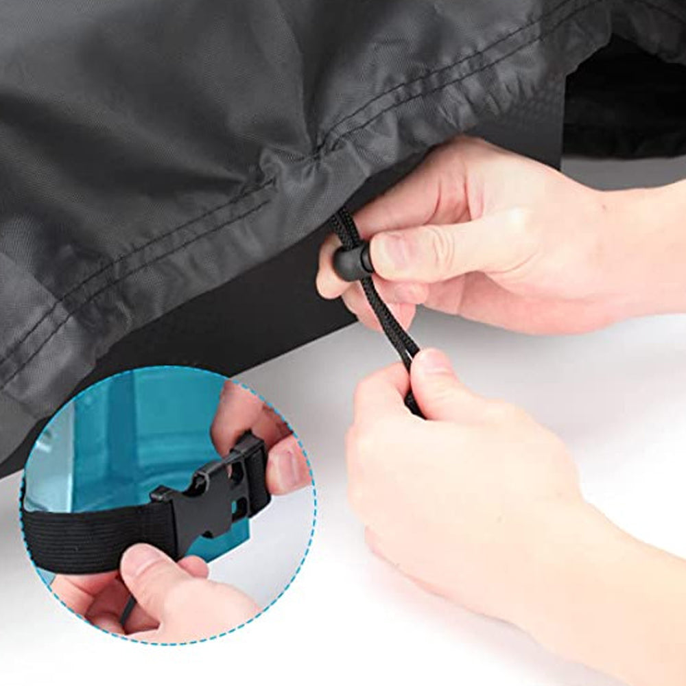 The unique fixing design, 4 wind-proof buckles and drawing, can prevent cover from blowing away.