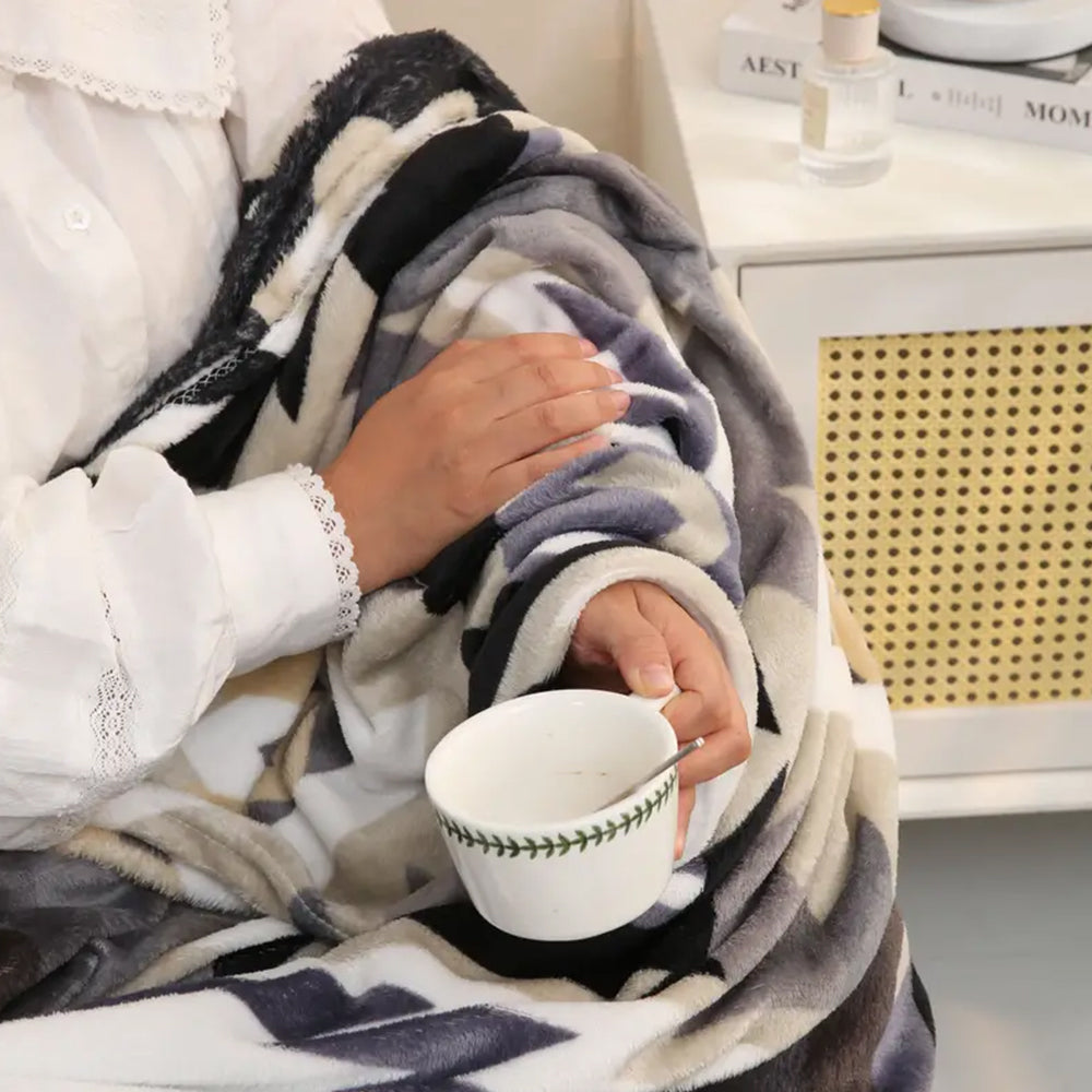 180x200cm Flannel Microfiber Throw Blanket Geometry Pattern Plush Blanket Grey