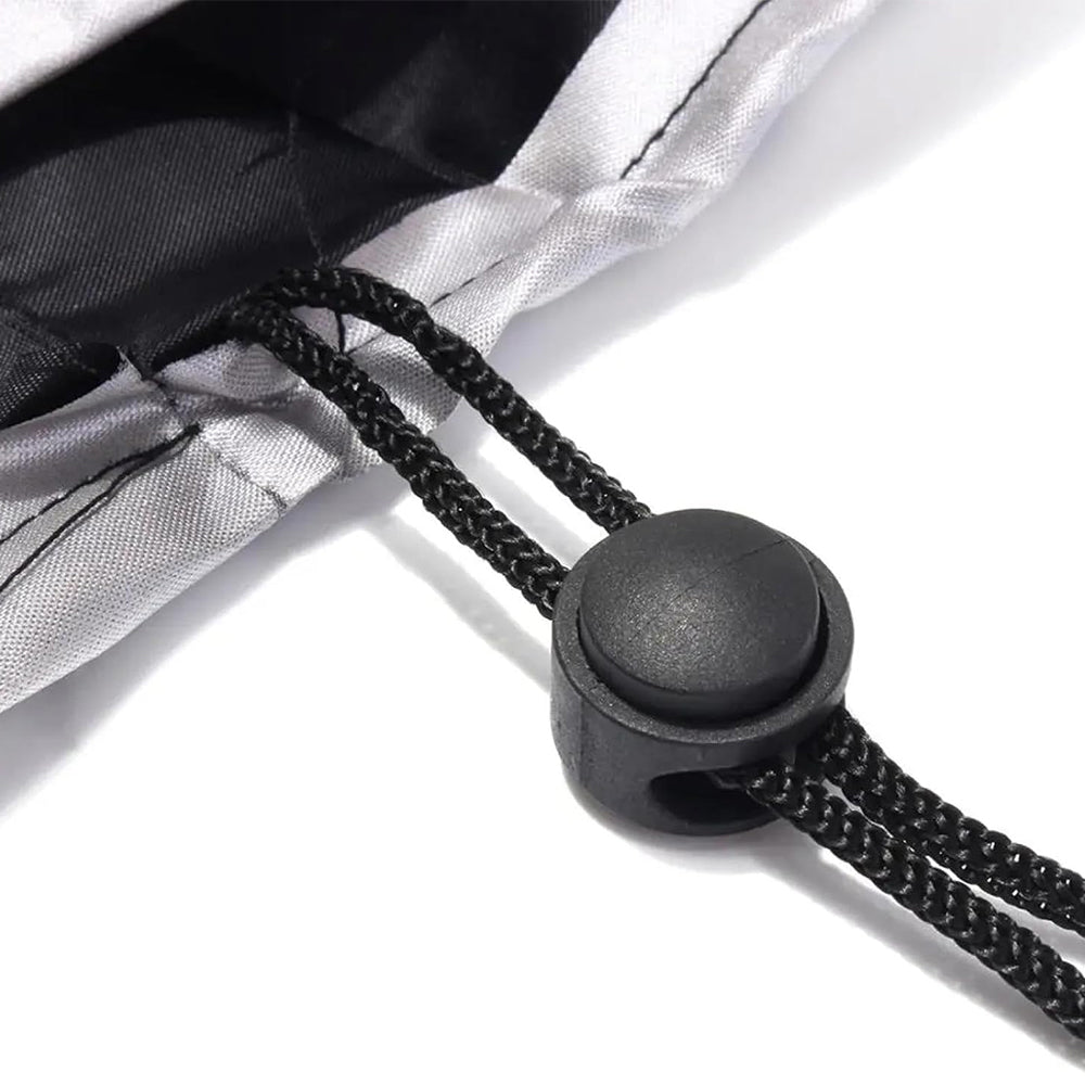 The cover includes a drawcord and buckle at the bottom, allowing you to adjust and secure it around chair legs to prevent wind from blowing it off.