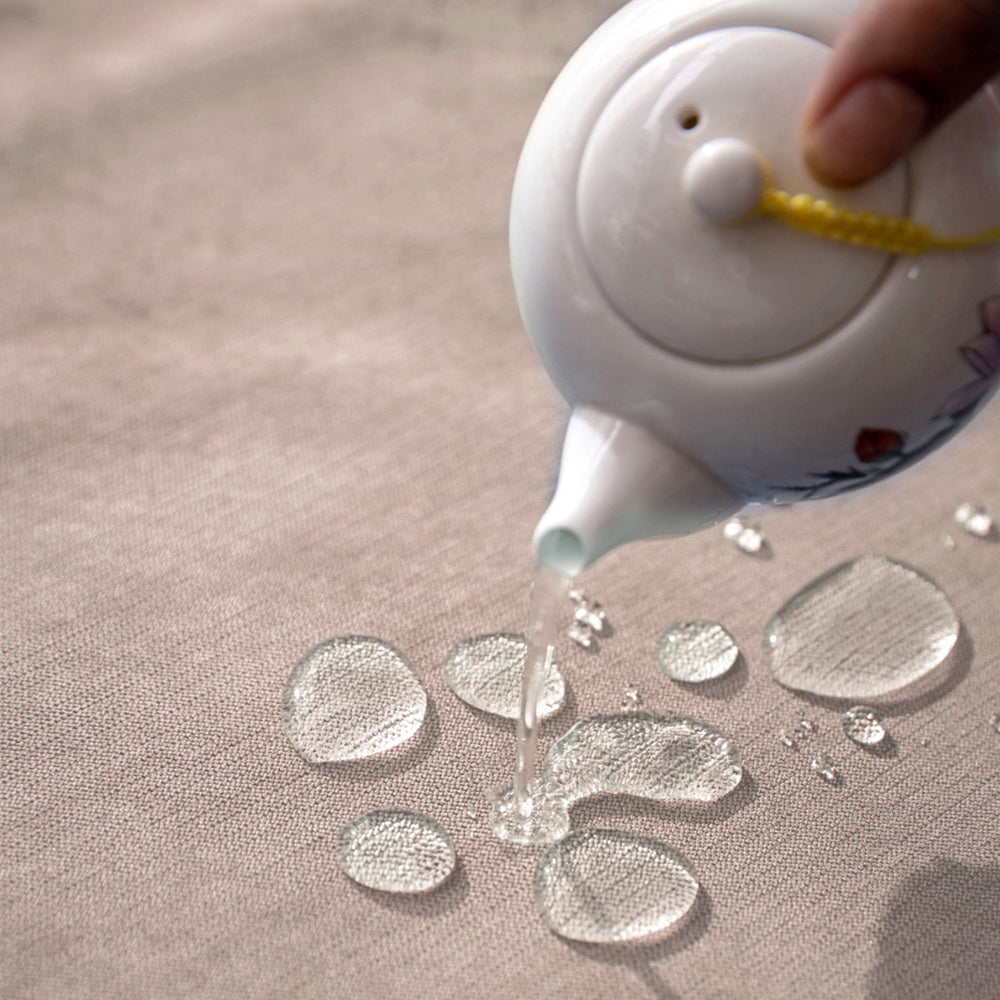 Features nano water resistant layer, just wipe the liquids drops on the furniture cover by a duster cloth or tissue immediately when the liquids inadvertently spilled on the slipcover, then your sofa will not get wet.