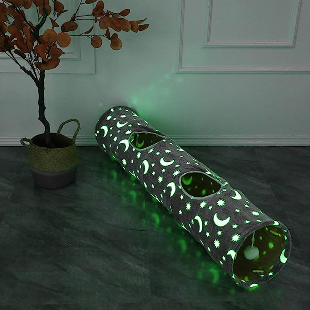 Cat Tunnel Toy Pet Plush Ball Collapsible Luminous Glow In Dark Tunnel Style 2