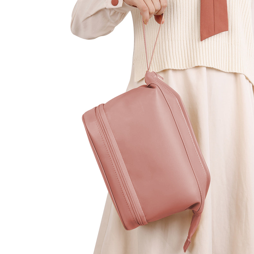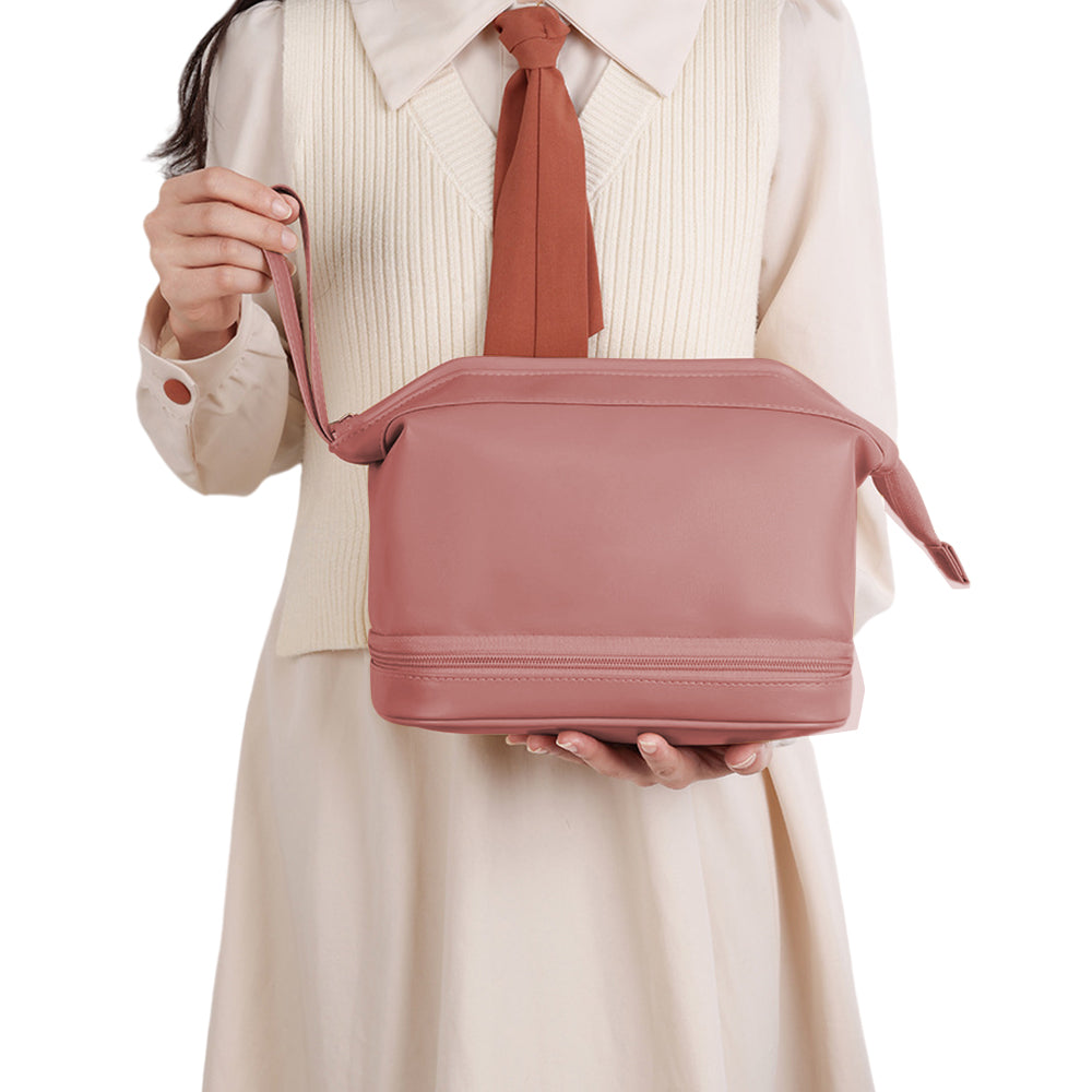 Double Layers Makeup Bag Travel Toiletry Bag Cosmetic Organizer Pink