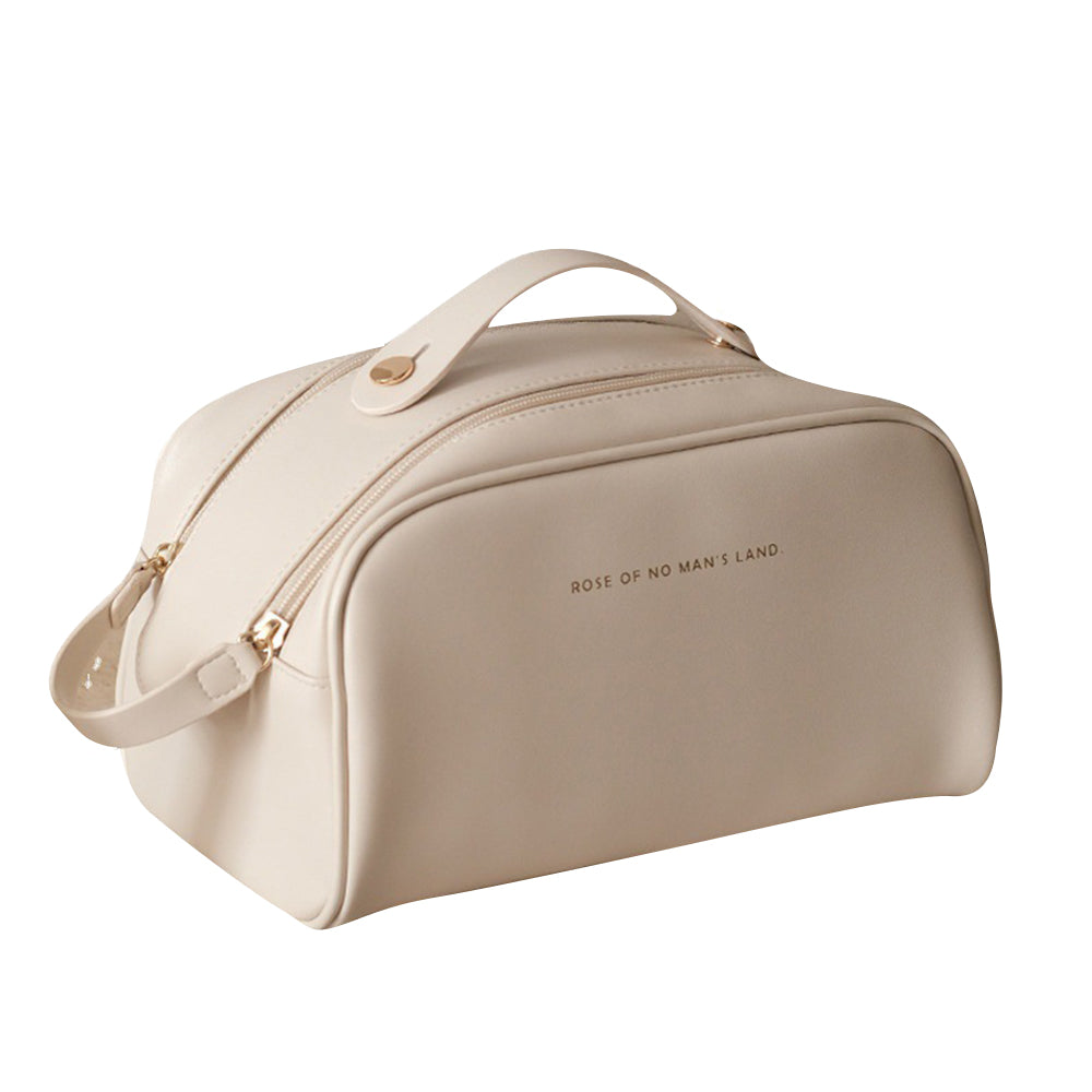 Double Zipper Travel Makeup Bag Cosmetic Bag Makeup Brushes Organizer White