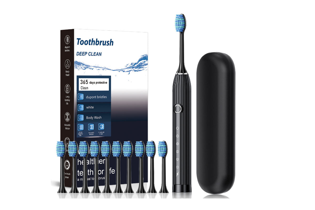 Electric Toothbrush with 10 Brush Heads and Travel Case