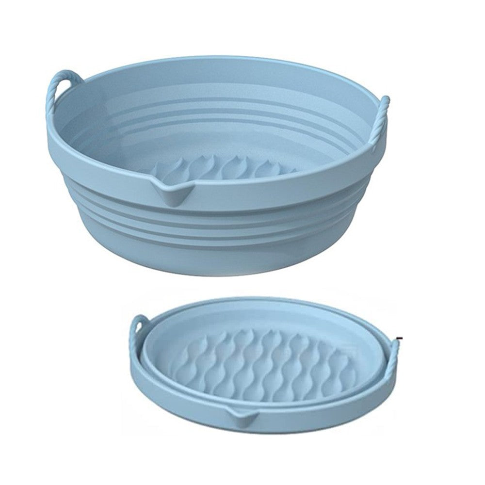 Foldable Air Fryer Silicone Pot Liners Reusable Baking Tray Pan with Handle Blue