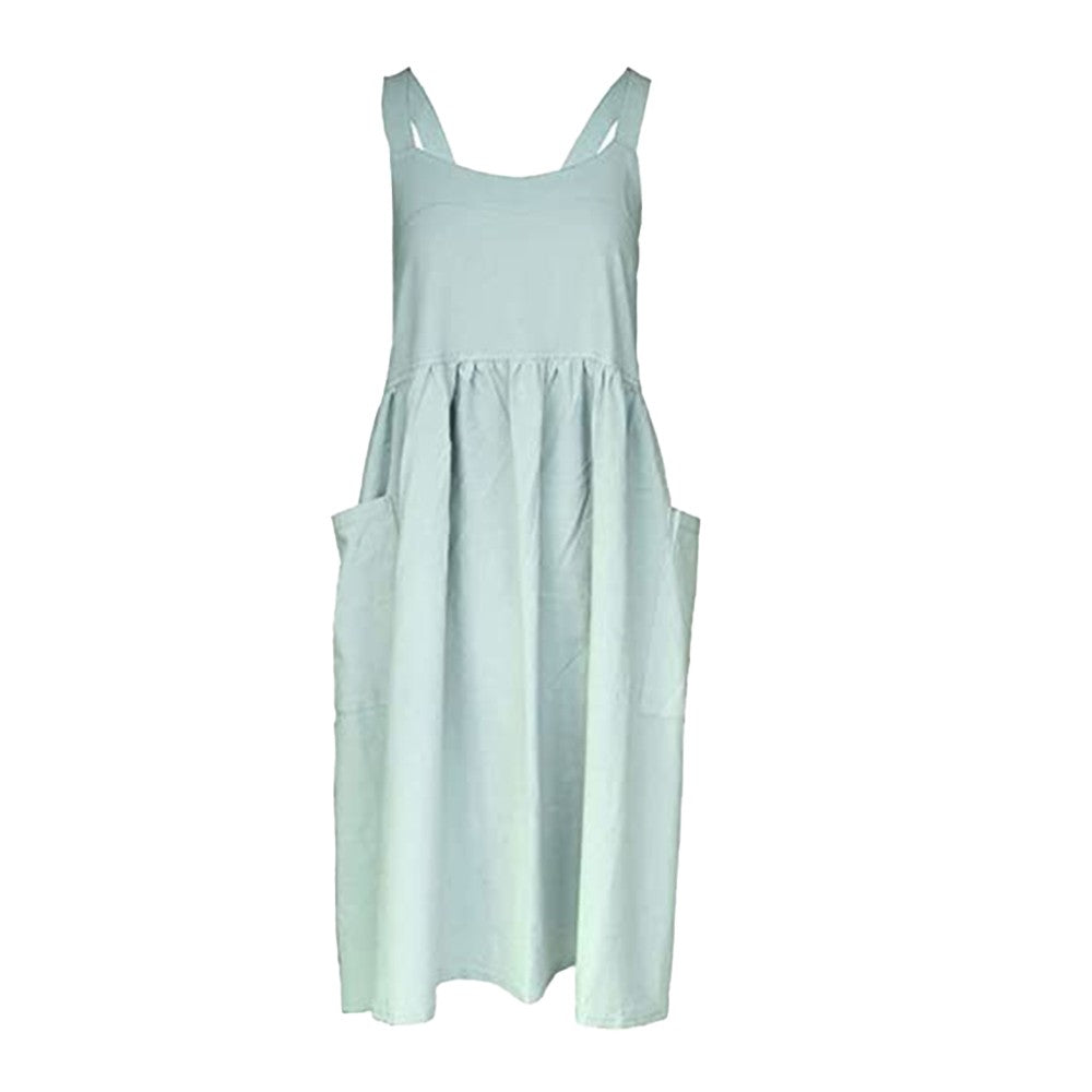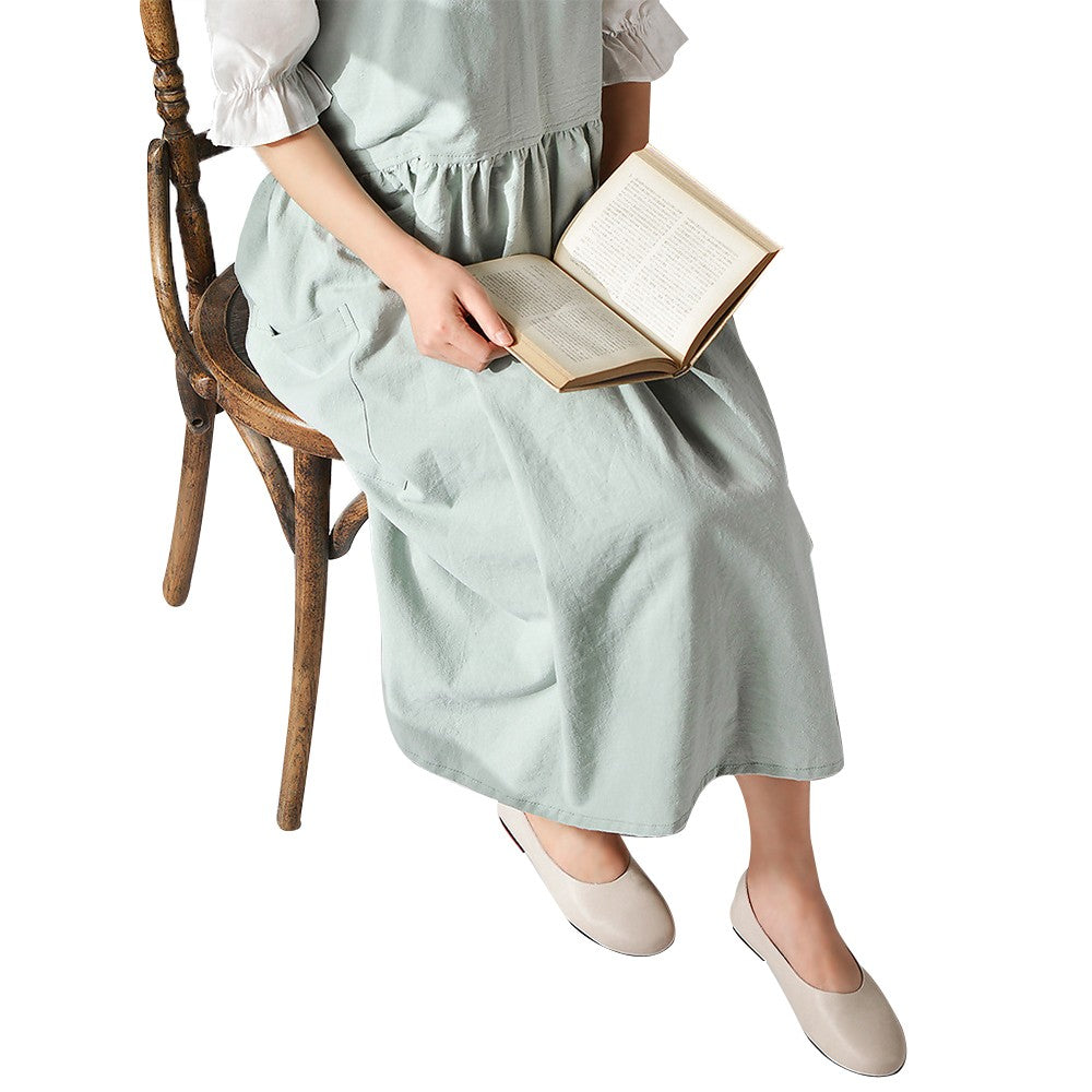 Green Cotton Linen Aprons Cross Back Apron with Pockets for Kitchen Flower Shop