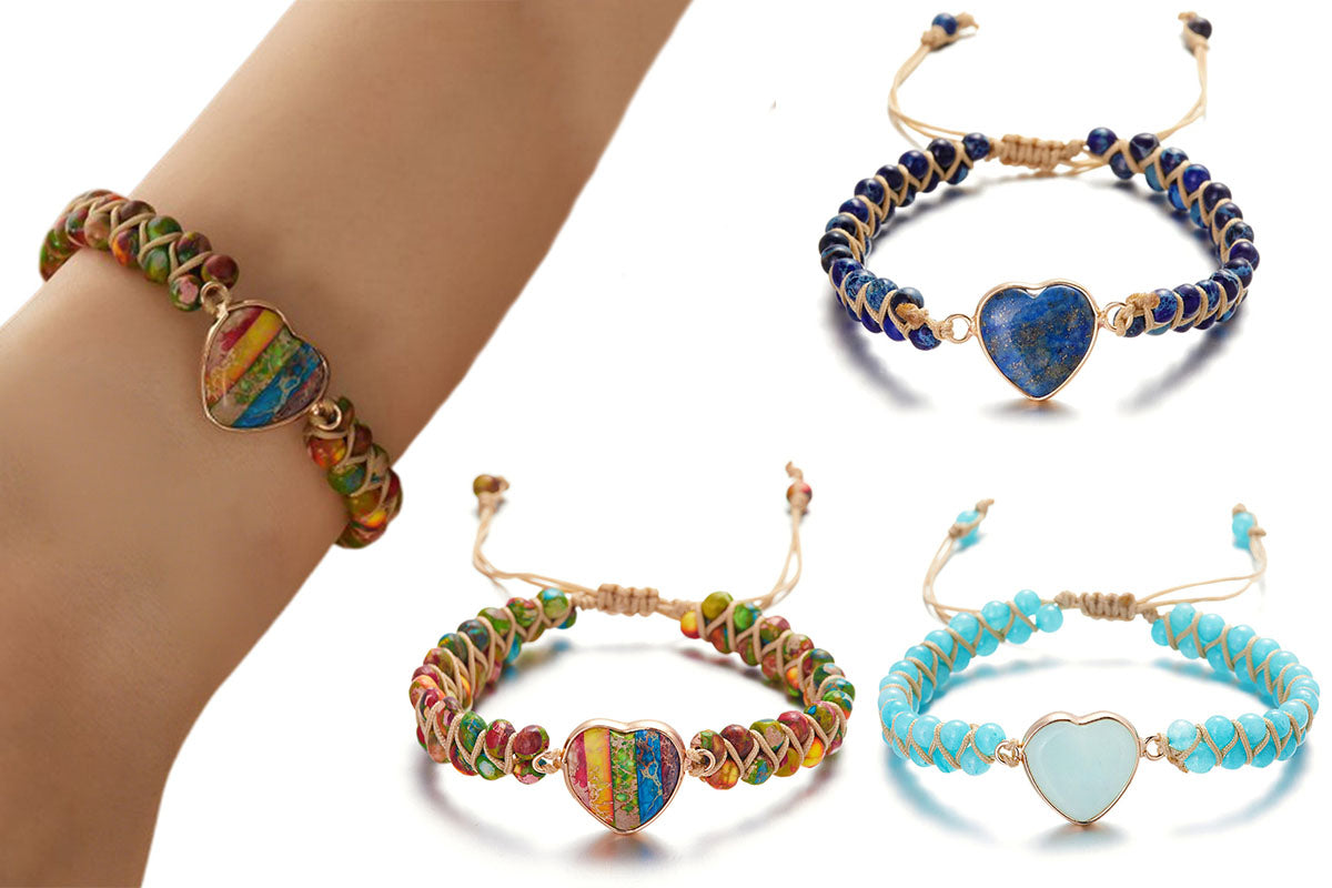 Handmade Natural Stone Beaded Bracelet Adjustable Woven Bangle