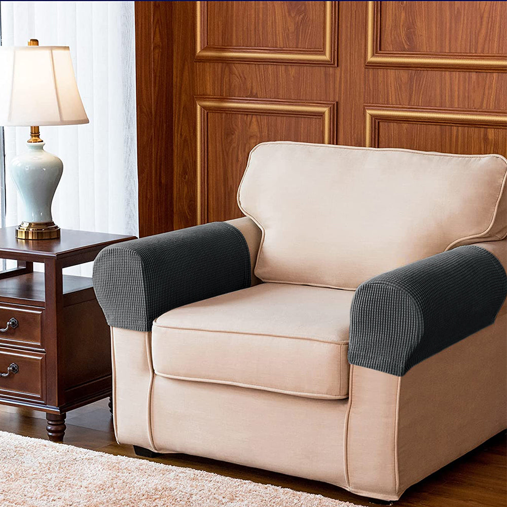 One Pair Dark Grey Sofa Chair Armrest Cover Stretch Couch Arm Protectors