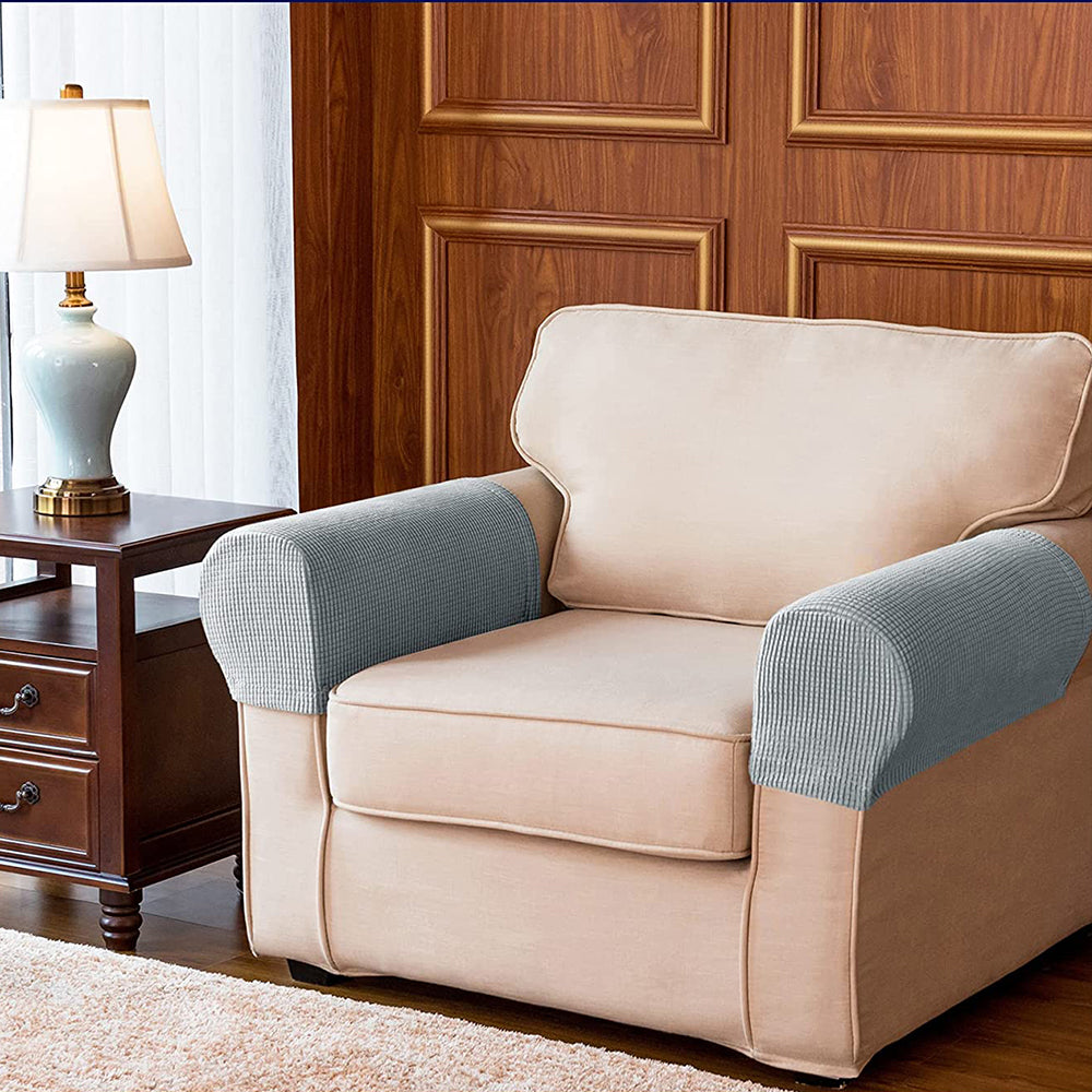 One Pair Light Grey Sofa Chair Armrest Cover Stretch Couch Arm Protectors