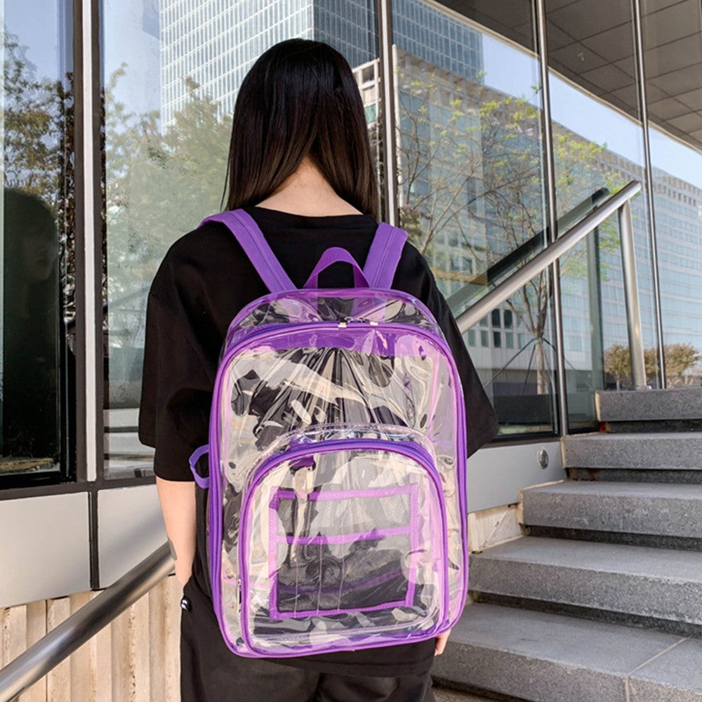 PVC Clear Backpack Transparent Bookbag School Backpack with Reinforced Strap Purple