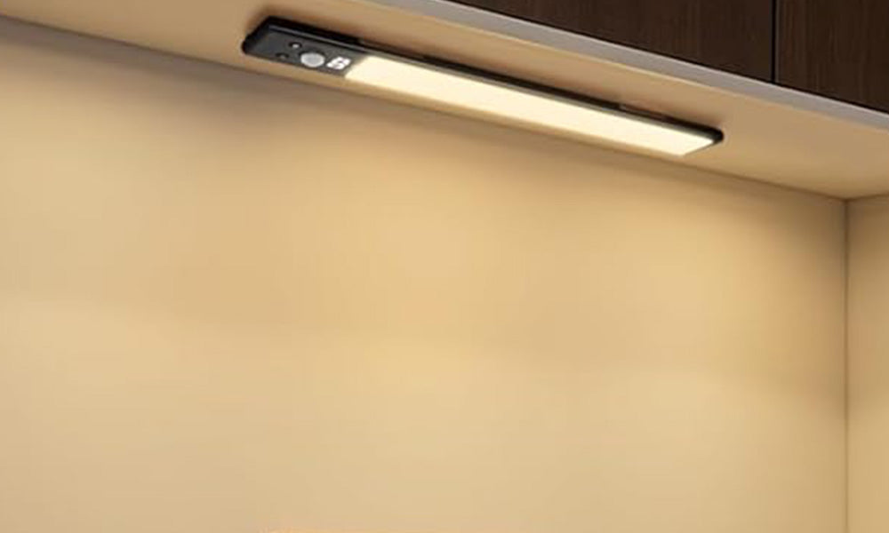 Rechargeable LED motion sensor light with a digital display and three adjustable color temperatures, perfect for cabinets, closets, hallways, and kitchens.