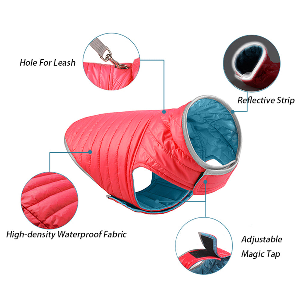 This pet jacket is reversible, reflective and outer water resistant. Keep your pet warm in cold winter.