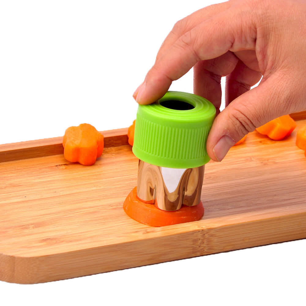 The mini cookie cutter just taps on the vegetable cutter to get the desired pattern.