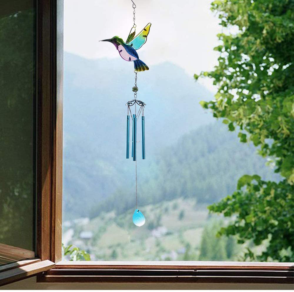 Stained Glass Wind Chimes Blue Hummingbird Wind Chimes Home Decor for Mothers Day