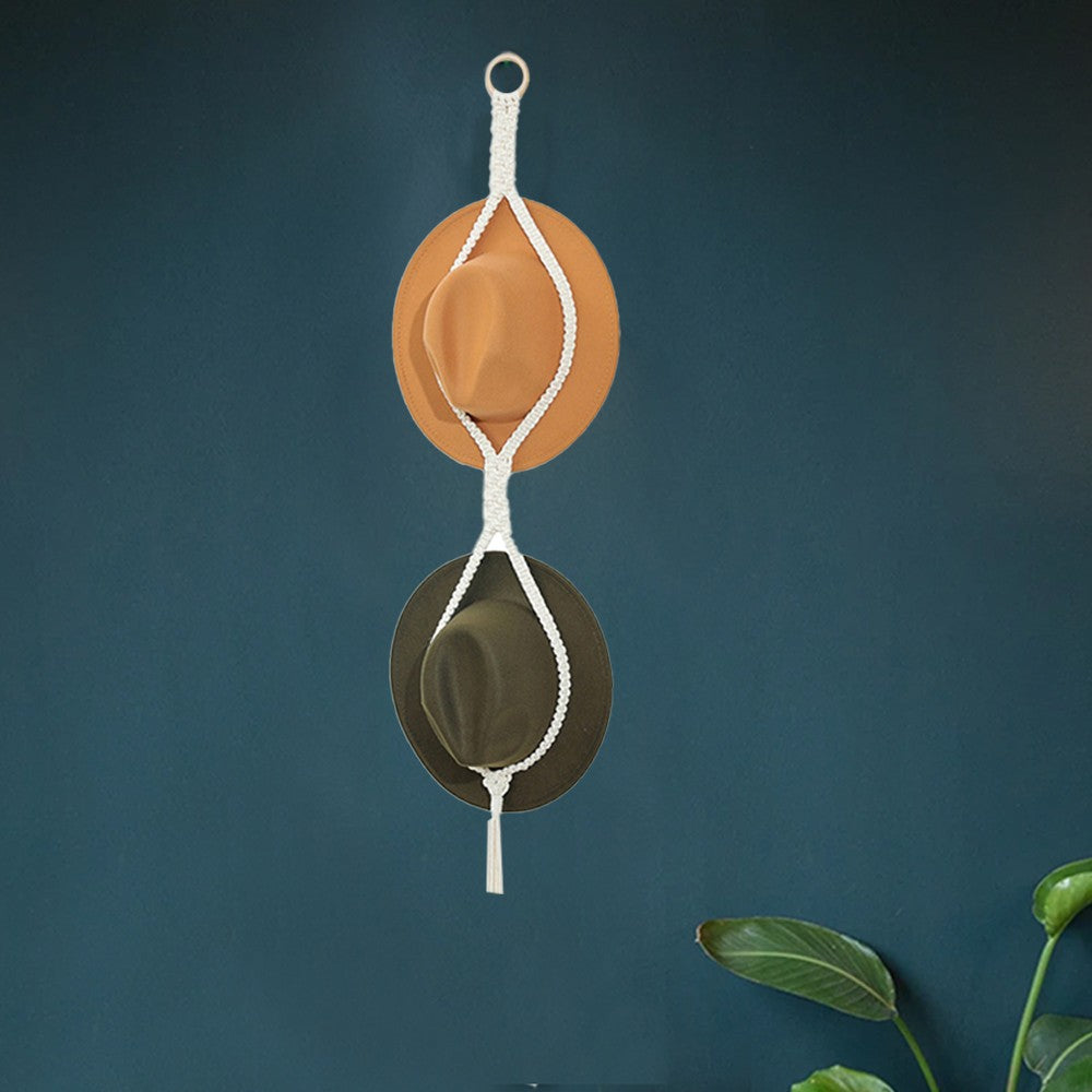 Two Loop Style Boho Hat Display Rack Caps Holder Hat Storage Hanging Rope