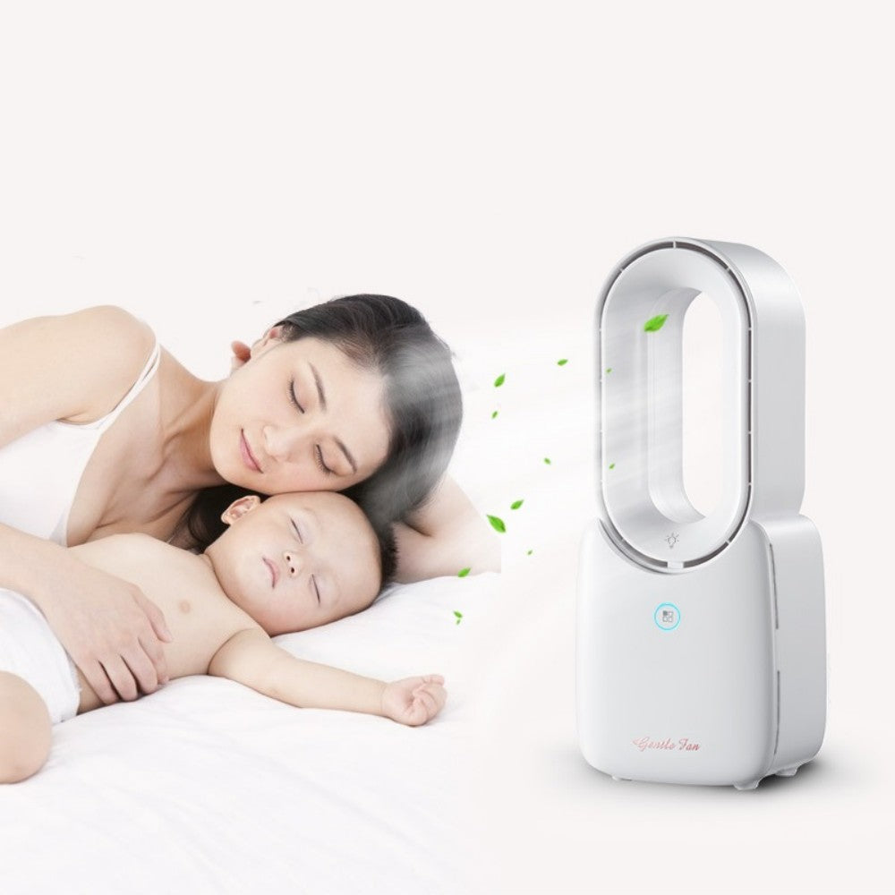 Safe bladeless design with 3 adjustable speeds and 4 modes, perfect for home, office, or travel.