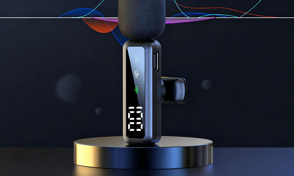 High-sensitivity wireless clip-on Lavalier with digital display, providing clear and professional audio recording anywhere.
