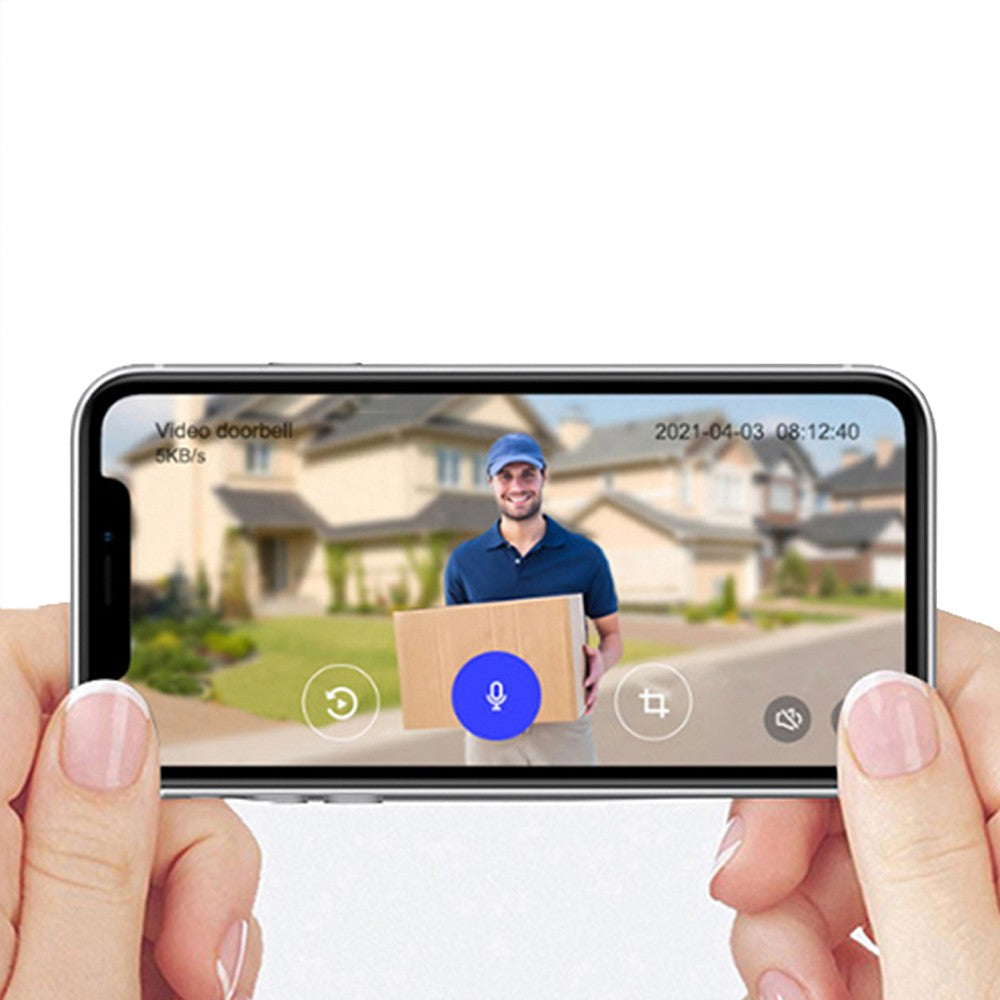 The video doorbell lets you instantly talk with the person at the door wherever you are via the App, helping you keep up with daily life. Never miss a visit from friends, deliveries, or takeaway!