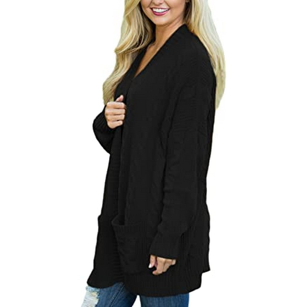 Women Knit Long Sleeve Pocketed Cardigan Black